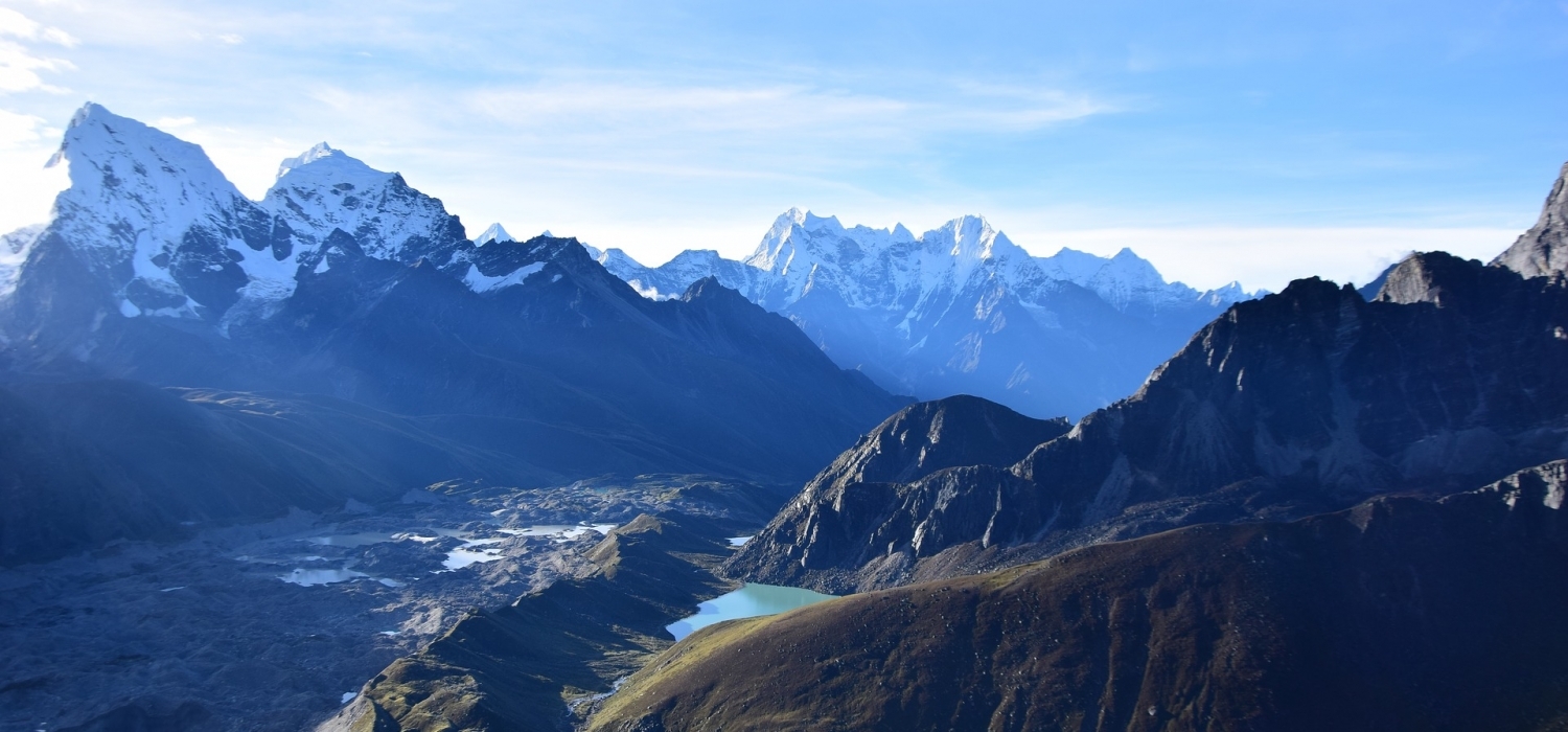 You won't have to walk for too long today. A 4 hours walk will take you to Gokyo Lake. On crossing bridge, you will be walking through Ngajumpa glacier and will reach the first lake which is known as Longopongo. You will encounter Lama footprints on some of the stone. Eventually, you will reach Taboche Tsho, the second lake which is dark navy blue in color. The lake shining with rays of sunlight will make you cherish and mesmerize the feeling of absolute bliss. Dudh Pokhari, the third lake will take you to Gokyo village which gives you panoramic views of Gyachung Kang, Lhotse, Makalu, and several other peaks. The magnificent view you get once you reach the peak is satisfying.