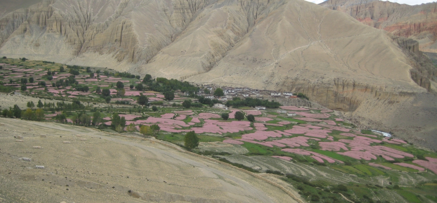 Your trek today starts with an inclination by a rugged and usually slippery path. You then pass a suspension bridge over the Ghami Khola and start mounting. The trail is attractive with several walls accompanying the trail. Next, you pass the Tsarang La Pass and enter Tsarang village. The village occupies atop the Charang Chu canyon including an enormous fortification and a red gompa. Overnight in Tsarang.